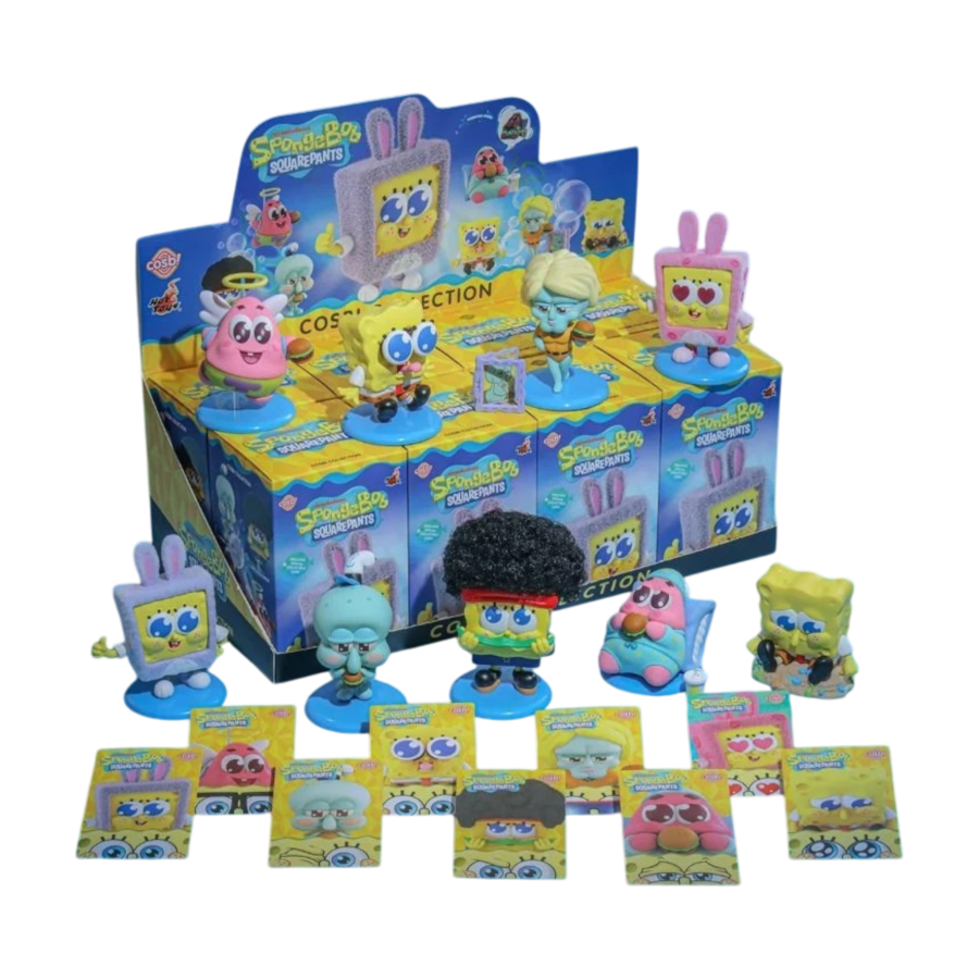 Each random package box includes an approximately 6 - 9.5cm tall SpongeBob SquarePants Cosbi Collection and a special collection card. It comes sealed in a foil bag and is blind boxed to preserve the rarity and collectability of the series. Available in selected markets only.