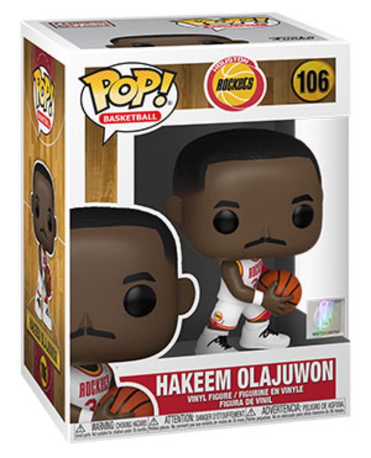 Draft NBA legend Hakeem Olajuwon, center for the Houston Rockets, into your National Basketball Association collection with Pop! Hakeem Olajuwon in his home jersey. Vinyl figure is approximately 4-inches tall. View all