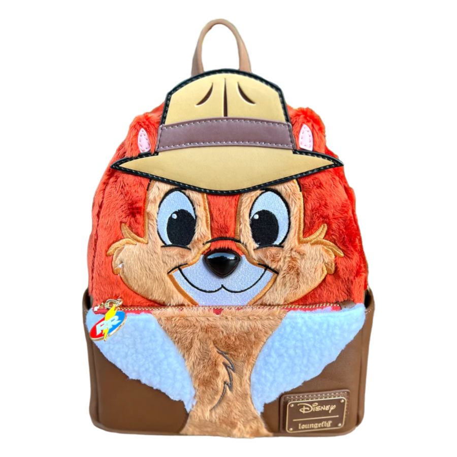 The exclusive Loungefly Chip n Dale Rescue Rangers CHIP Cosplay Mini Backpack has finally arrived. Complete your collection with this gorgeous plush Mini Backpack. On the front, Chip wears his signature bomber jacket while his Indiana Jones like hat rest atop his head.