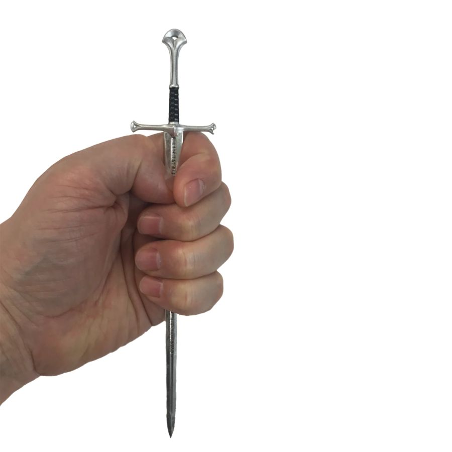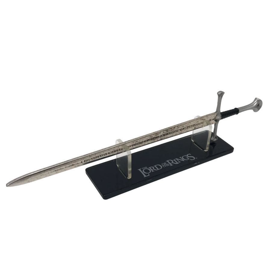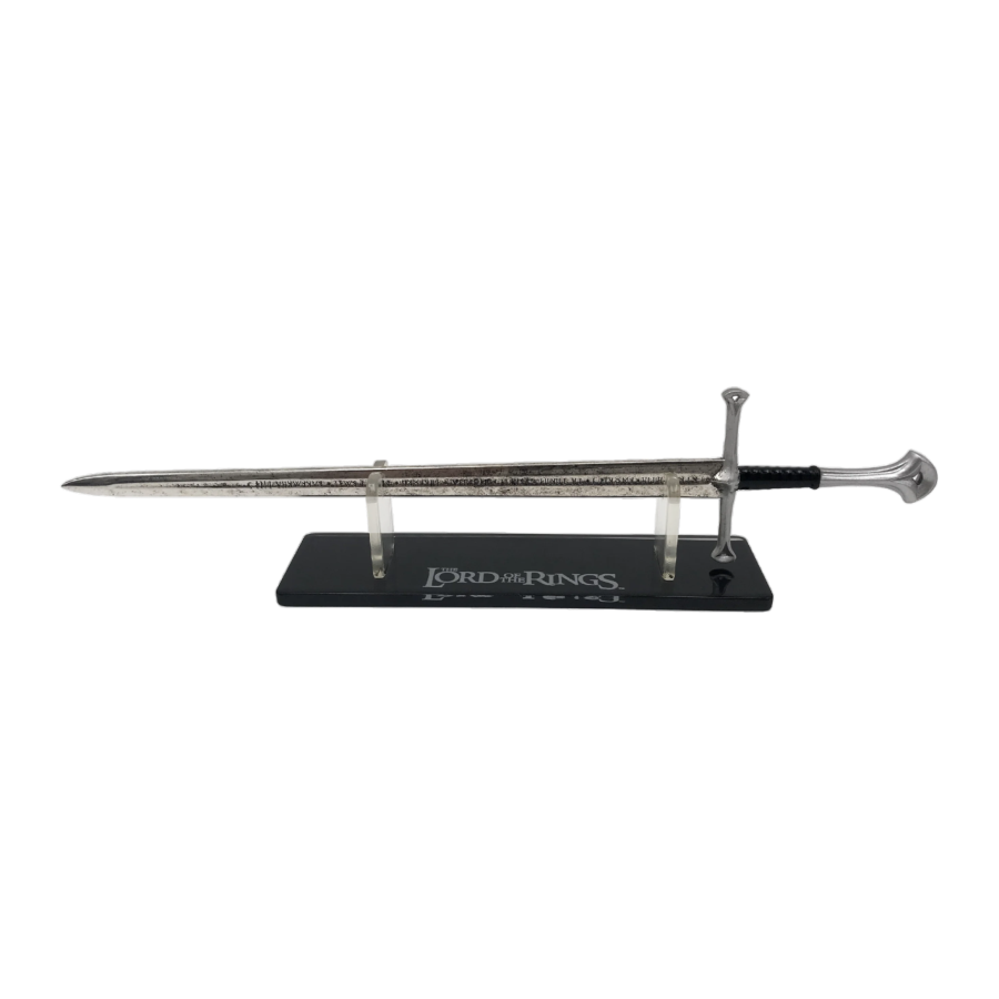 A high quality, officially licensed scaled prop replica of Andúril, also called The Flame of the West. A sword reforged from the shards of Narsil, the sword of Elendil, which Isildur used to defeat Sauron during the Second Age. Wielded by Aragorn in the Lord of the Rings trilogy.