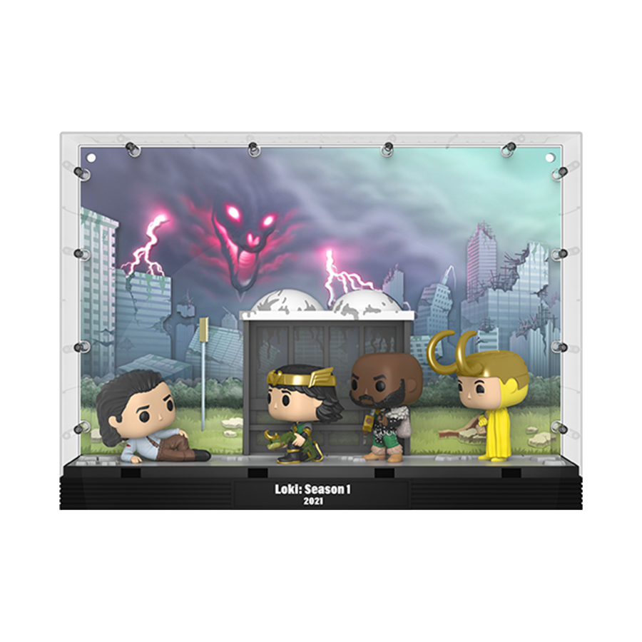 Loki's plans took an unexpected turn when he stole the Tesseract. Bring the adventure home from Marvel's Loki television series and into your collection with this Deluxe Pop! Moment of the Pop! Loki, Pop! Boastful Loki, Pop! Kid Loki, and Pop! Classic Loki in the Void! Pop! figures are adhered to backdrop to ensure scene integrity and ease of display. Approximate dimensions of protective case: 18"W x 13.25"H x 4.75"D View all