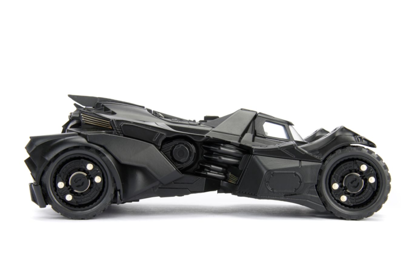 Be the Batman. No Batman collection is complete without the Arkham Knight Batmobile. Featuring a die-cast body and rubber tires, this 1:24 scale Batmobile is a must have in any collection! This vehicle also includes a 2.75 Batman die-cast figure. Collect them all today.
