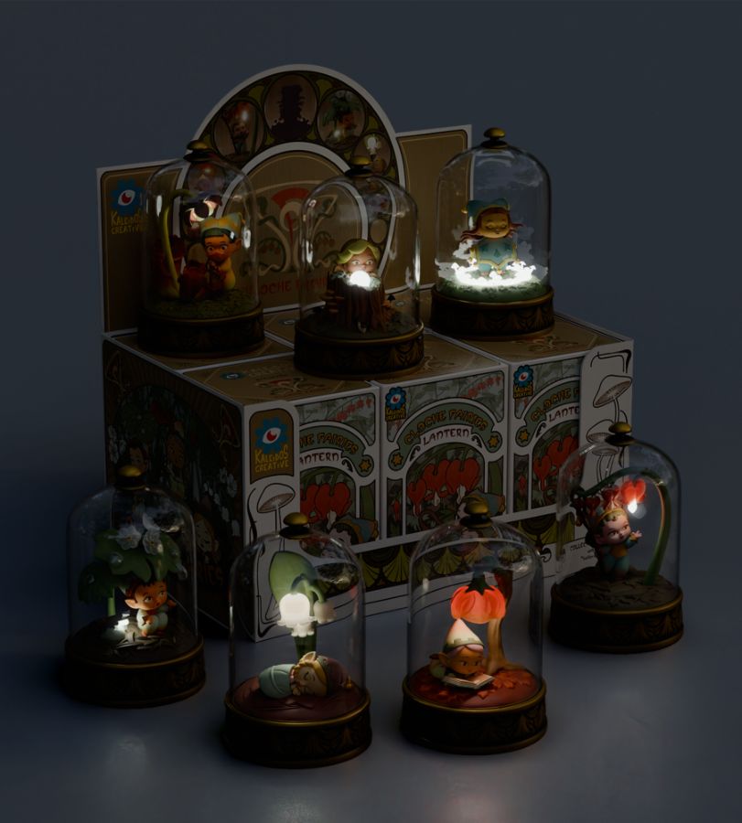 Cloche fairies are sprites named after the flowers and plants they are most drawn to. They are hidden from human eyes and live mostly quiet, simple lives in nature. Each cloche figure is a lantern that contains an LED light feature. Requires 2 (two) AAA batteries (not included). Blind Box: This set contains 6 common designs and 1 secret. Material: PVC, ABS, LED light Size: 4.6 in (11.8 cm) Concept Artist/Sculptor/Packaging Artist: FigCat