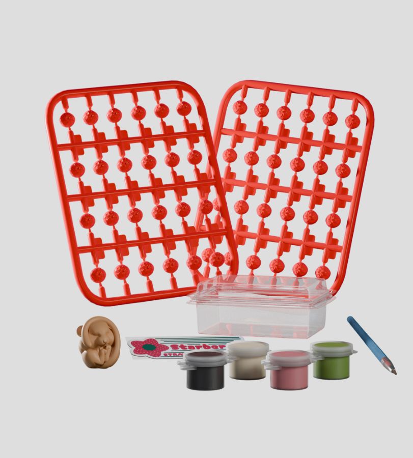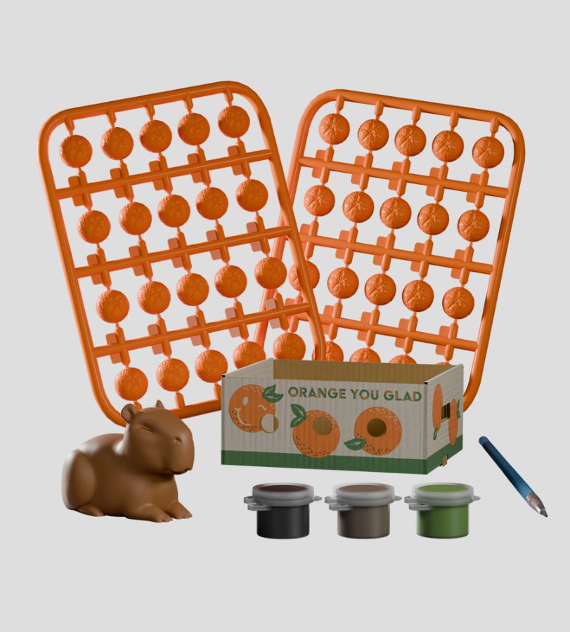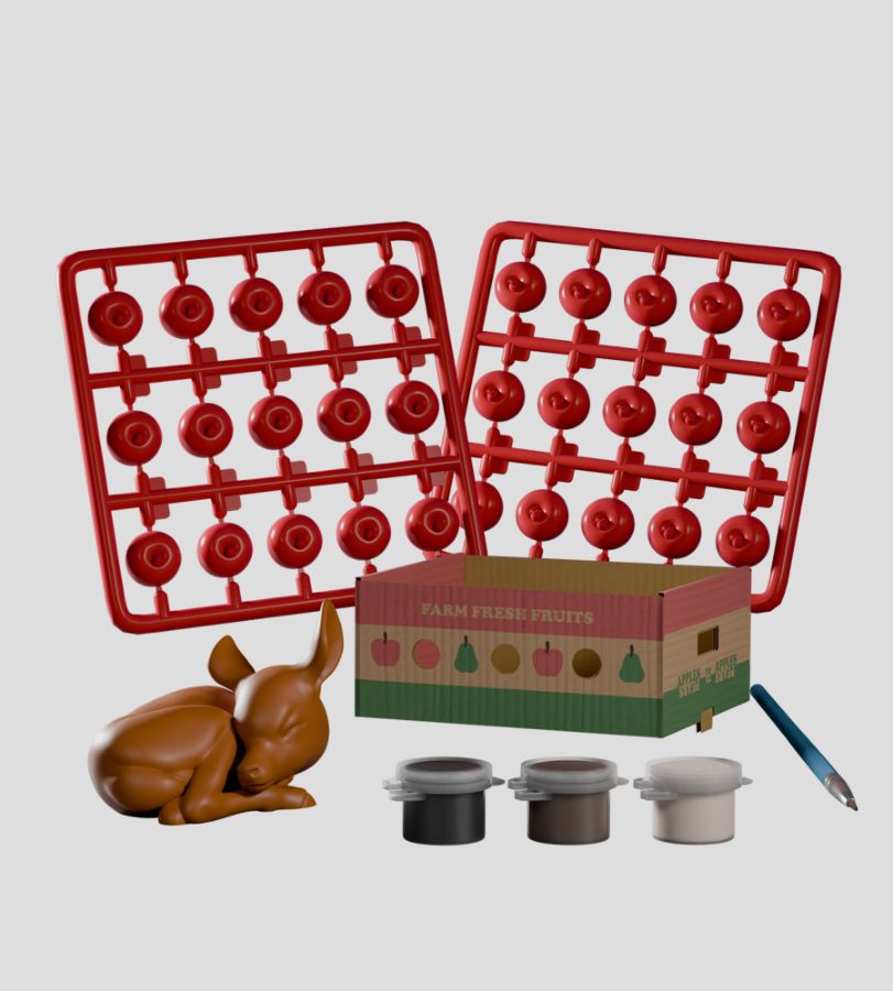 This is a blind box crafting kit. Each item comes with one animal, a miniature produce box, fruit to fill the box, and paint.
