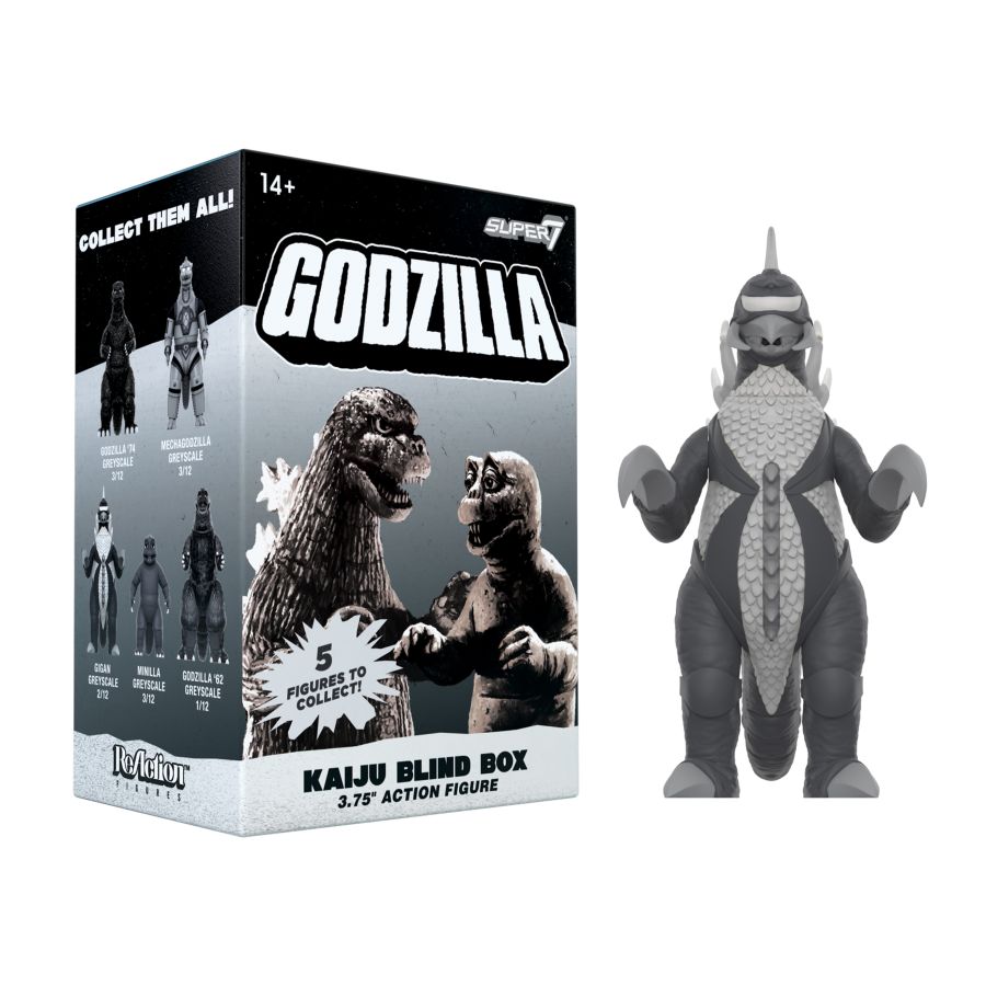 If youve ever been waiting to recreate a classic black and white film scene from Tohos Godzilla franchise, your day is finally here! The latest wave of 3.75" scale, articulated Toho Blind Box ReAction Figures feature silver screen-inspired designs of Gigan, Godzilla 74, Minilla, Mechagodzilla, and Godzilla 62!
