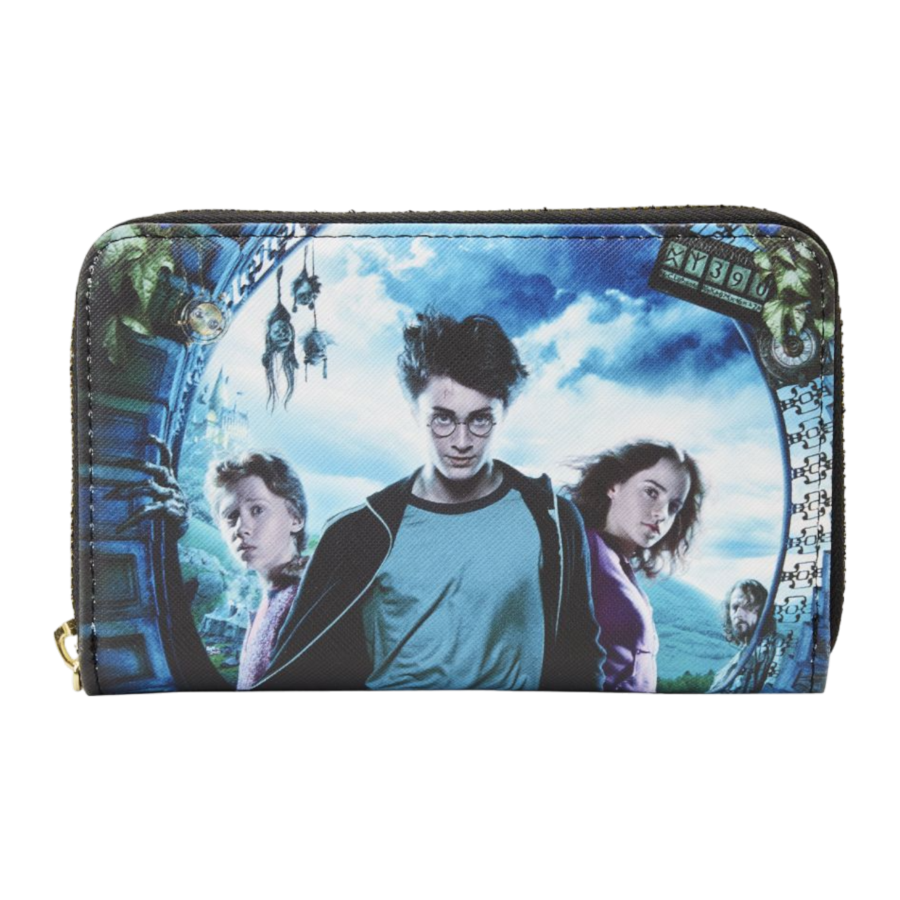 All wands at the ready! Prepare for an adventure with our Loungefly Harry Potter and the Prisoner of Azkaban Movie Poster Zip Around Wallet. Rich, printed details bring this famous Harry Potter poster image to life. On the back, youll find the Hogwarts School of Witchcraft and Wizardry emblem in gold debossed print. Open up the wallet, and there are 4 slots for carrying cards and 1 clear slot for displaying your ID. A die-cut image of a lightning bolt adds an electrifying touch. Its the perfect accessory for strolling along Diagon Alley or for turning everyday outings into fantastic excursions.