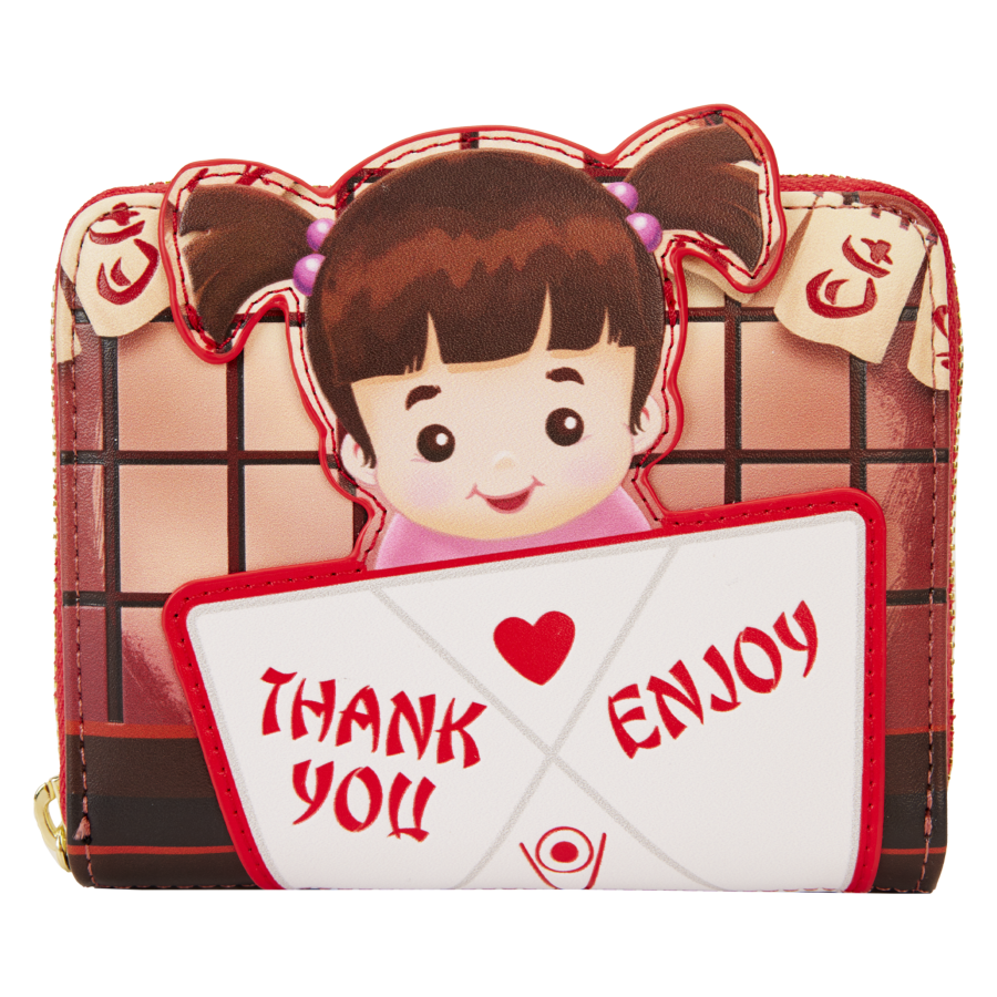 Love is on the menu for Mike and Celia, but their fortune is about to change! The Loungefly Monsters, Inc. Boo Takeout Zip Around Wallet sets the scene on a romantic date night. On the front, Boo pops out of a takeout box. On the back, Sully watches a terrifying surprise unfold behind the happy couple. Open the wallet to reveal four slots for holding cards and a clear slot to hold ID. Whether youre hitting the town or chasing little monsters, this accessory is a real scream.