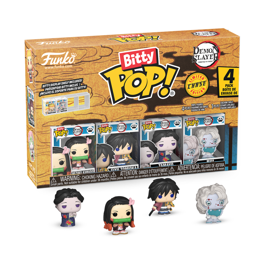 Expand your Demon Slayer collection with this 4-pack featuring Bitty POP! Nezuko Kamado, Bitty POP! Giyu Tomioka, Bitty POP! Tamayo, and a mystery Bitty POP! figure.