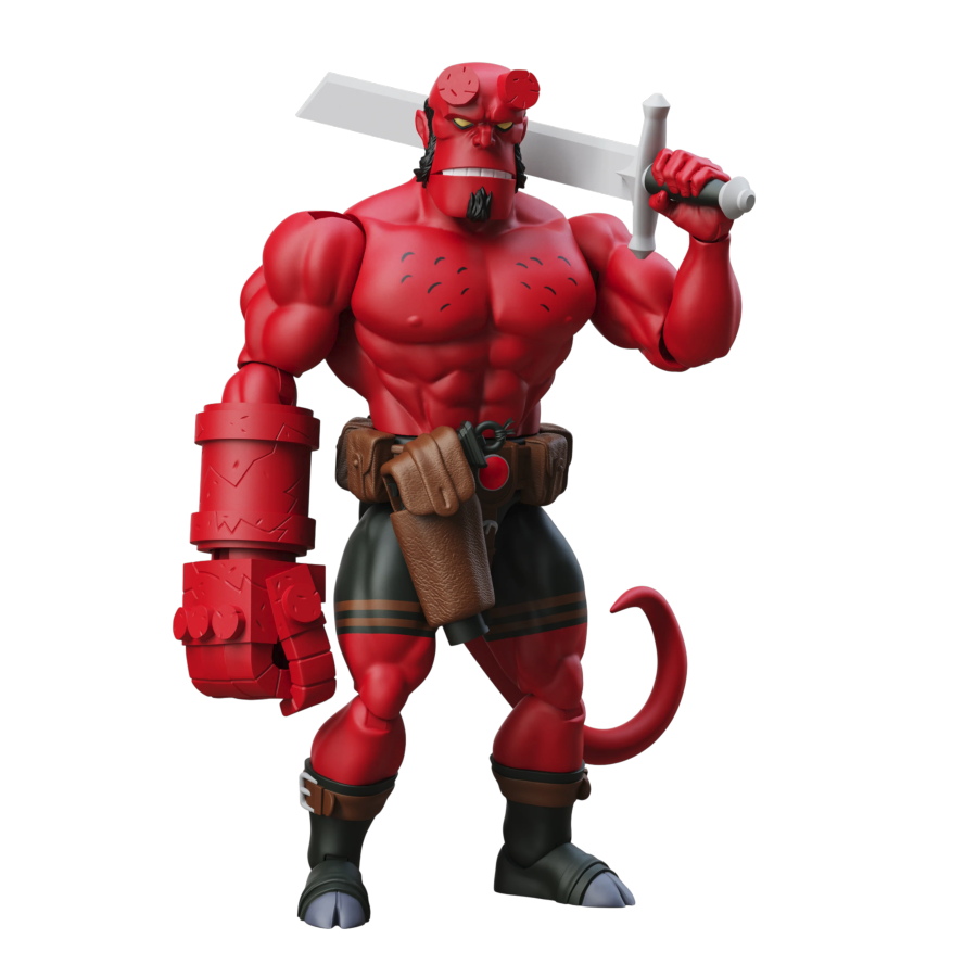Hellboy has 27 points of articulation, features Boss Fight Studio's signature attention to detail and includes pistol, holster and sword. Perfect for battling and/or drinking with skeletons. Blister card packaging.