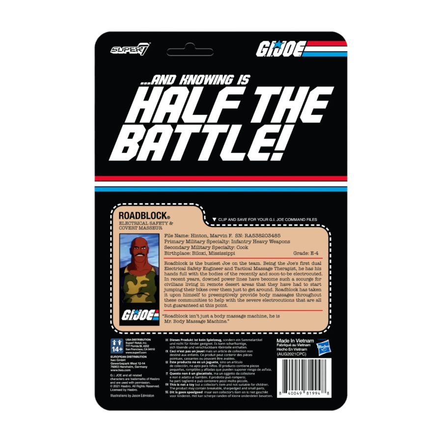You know adding this Roadblock ReAction figure to your collection will be more fun than a body massage, and knowing is half the battle!