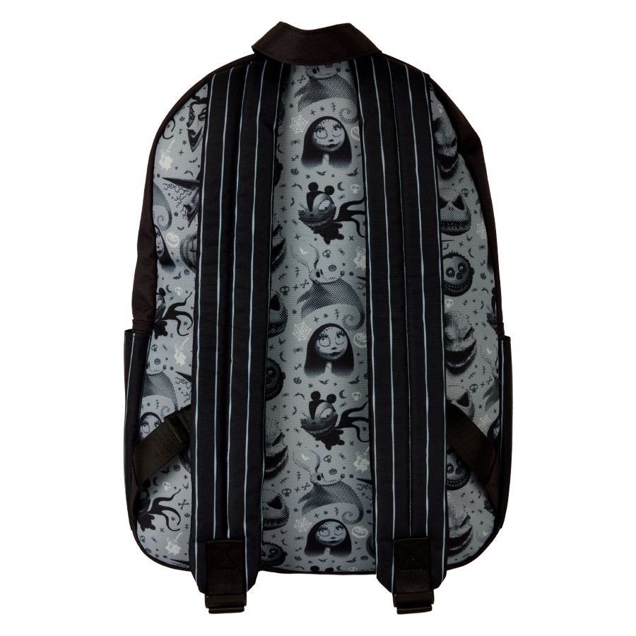 This full-size backpack pays tribute to everyone's favorite Pumpkin King! You'll find Jack Skellington on the front pocket against a black-and-white striped background. All over the front of the bag, you'll find images of some of your favorite characters from Halloween Town, including Jack, Sally, Oogie Boogie, and more!