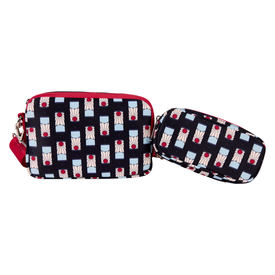 This sling bag features an all-over print of Tanjiros earrings. It zips closed to keep your essentials secure. Attached to the crossbody strap is a coin bag to hold smaller items.