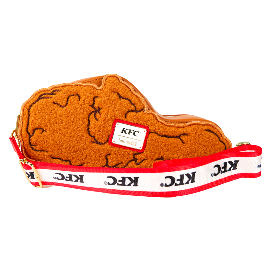 This figural crossbody bag is in the shape of one of KFC's famous wings, covered in sherpa material, and embroidered for extra detail. The crossbody strap is covered in the KFC logo. You're gonna tell us you DON'T need a sherpa chicken wing crossbody bag in your life?!