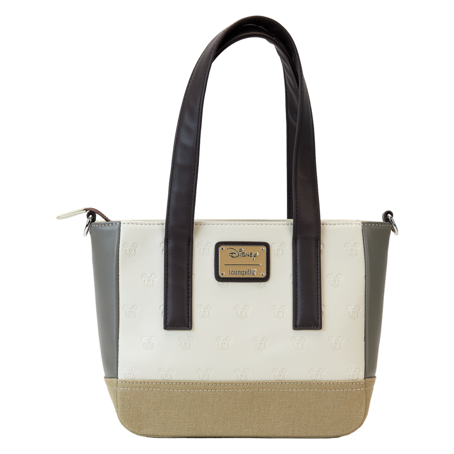 A debossed pattern featuring the face of Disneys Mickey Mouse adds a touch of character. Canvas trim and neutral colors create an elevated nod to your favorite fandom. This roomy tote is perfect for storing just what you need to take off on adventures in style.