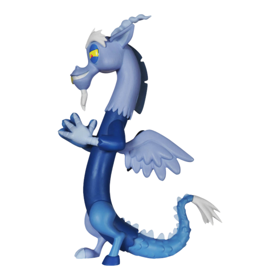 Discord, the mischievious dragon, with Blue Flu From the cartoon series My Little Pony: Friendship is Magic epsiode "Three's A Crowd" As voiced by John de Lancie Made of plastic/vinyl Approximately 6" tall View all