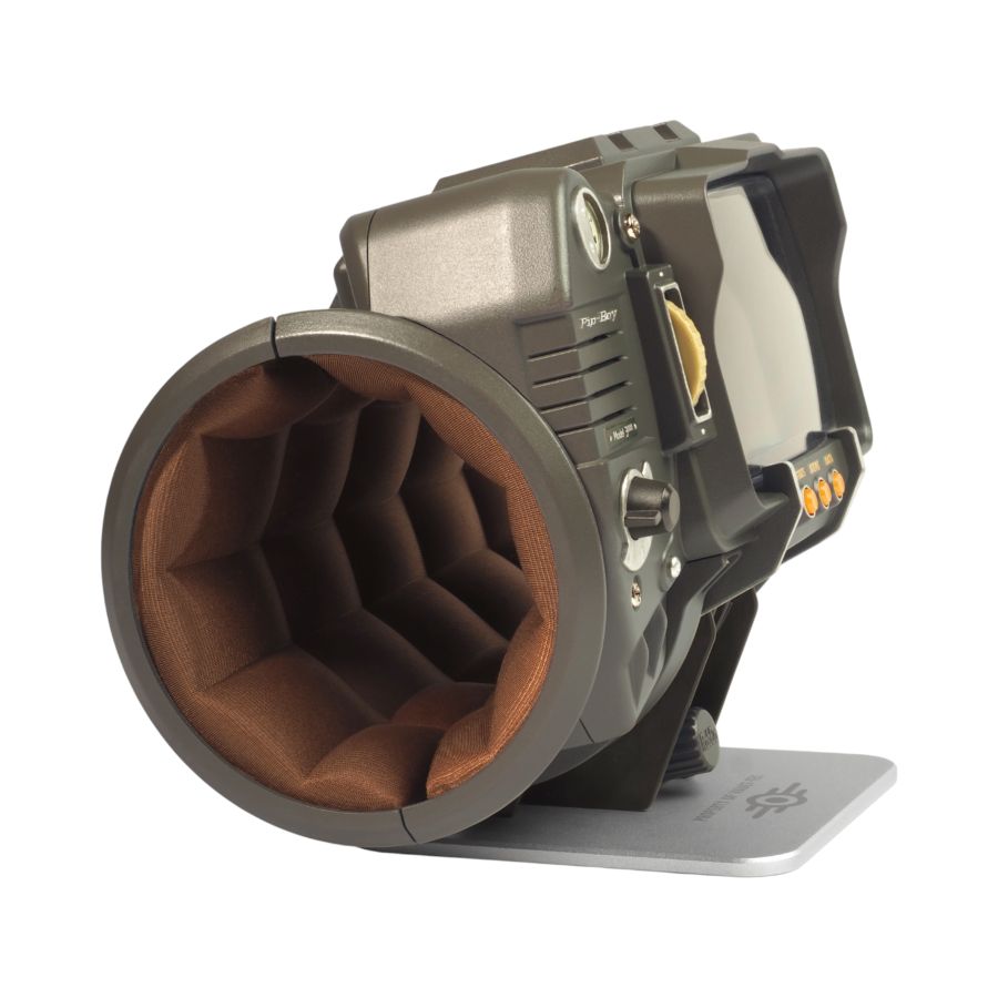 The stand has been designed to follow the lines of the Pip-Boy, the hard rubber claw slipping satisfyingly into the four slots on the Pip-Boy lower front. Manufactured from a 4 mm slab of solid aluminium, the exhibition display-grade stand looks the part yet will hold your Pip-Boy securely in position wherever you like to show it off, when it's not on your arm, of course. The stand is also a great place to store your RobCo hex tool when it isn't being used to secure the spacer bar that extends the cuff diameter.