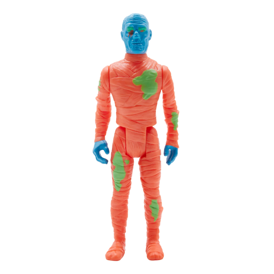 These old rags are to die for! This 3.75" articulated Universal Monsters ReAction figure of The Mummy features a bright color scheme and is packaged on a cardback inspired by wacky off-model color combos seen in vintage Halloween costumes. Whether you're a fan of Universal Monsters or retro-Halloween kitsch, this edition of The Mummy ReAction figure will be a delightfully frightful addition to your collection.