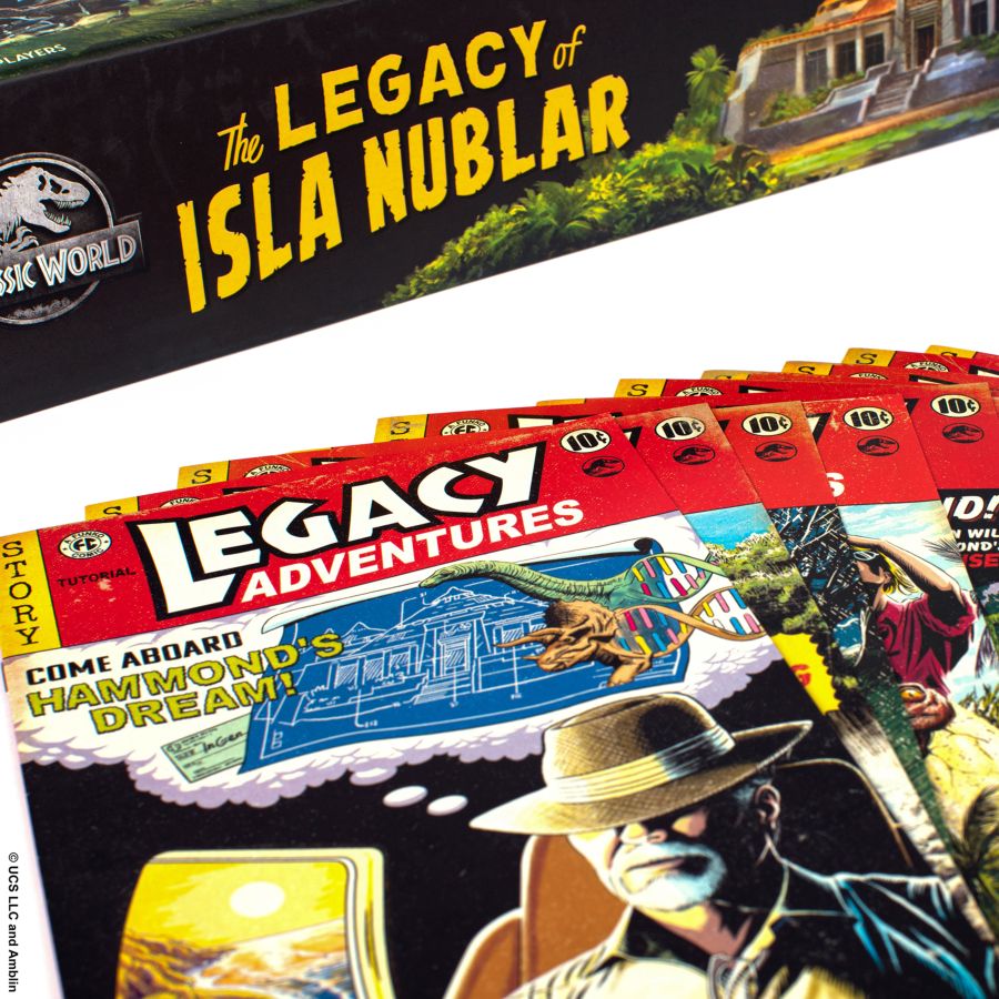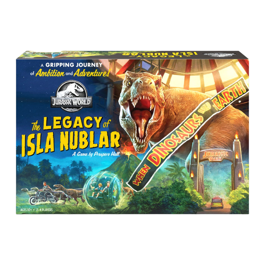 A game 65 million years in the making! An all-new, original legacy game experience from Prospero Hall which spans from the inception of Jurassic Park through the entire epic franchise. Age Range: Ages 10 and up Players: For 1-4 Players Play time: 90-150 minutes per adventure Welcome to Isla Nublar, where you and other scientists, dreamers, and schemers will build an attraction like no other. Take on the role of visionaries John Hammond and Simon Masrani, visiting scientists Dr. Alan Grant, Dr. Ellie Sattler and Dr. Ian Malcolm, sharp-minded park personnel Claire Dearing and Dr. Henry Wu, and many more, each playing a vital part in the island's legacy. Together, you will transform Isla Nublar into an astonishing paradise where awe-struck visitors encounter creatures never before seen by human eyes. Decide where to build park facilities, dinosaur enclosures, and guest attractions. And keep employees and visitors safe from the mighty Tyrannosaurus Rex, colossal Brachiosaurus, clever Velociraptor, and other threats. Play through 12 thrilling adventures in which you'll customize an entirely unique game board and breed new dinosaurs you cannot unmake. Your team's fateful choices will have a lasting impact, creating your own Isla Nublar story. Your experience will culminate in an endlessly replayable game of your own creation. View all