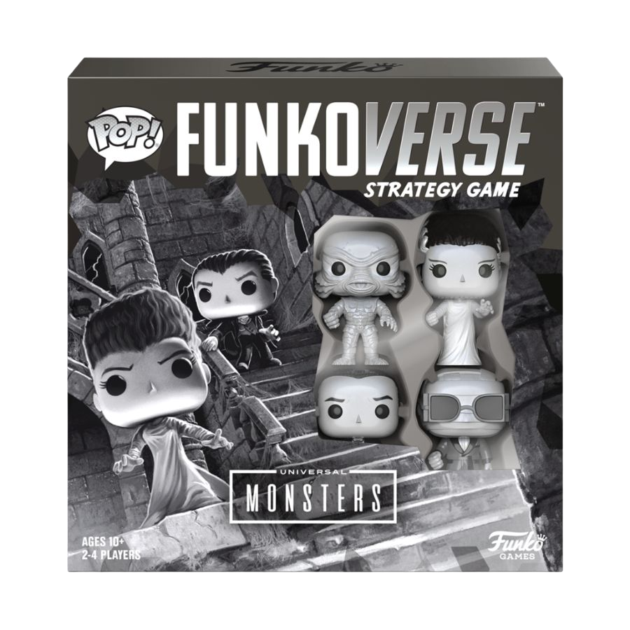 In the Funkoverse Strategy Game, you combine your favorite characters and go head-to-head in exciting game scenarios. Each turn, you select one of your characters and perform two actions. Each character has access to basic actions like moving and challenges as well as several unique abilities that may be performed only by spending ability tokens. Funkoverse uses an innovative “cooldown ” system — the more powerful the ability, the longer it will take for the ability token to become available again — so players have to spend their ability tokens wisely. Each character in Funkoverse is unique, so players are encouraged to try out different combinations of characters and items in order to discover their favorite synergies and powerful strategies for the different game scenario. Funkoverse Strategy Game: Universal Monsters 100 4-Pack Assemble the Bride of Frankenstein from robbed graves to unleash her undead prowess! Use Dracula ’s blood-draining abilities to power up your attacks and terrorize your foes! Ambush and abduct your rivals with the Creature From the Black Lagoon! Four different gameplay scenarios give four different ways to play the game! View all