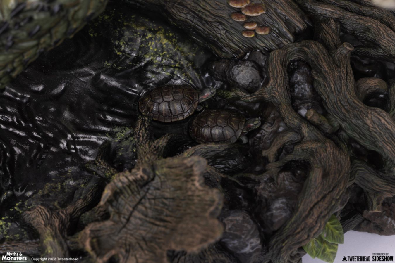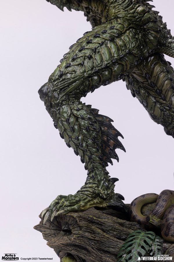 This fully sculpted polyresin statue comes with Gillman lurking out of the water in an amazon-like environment - a predator stalking his prey, ready to strike... Surrounded by plant life and other life-like creatures, this Gillman is sculpted and painted with super intricate and realistic details, as if this beast is as real as the snakes, turtles, and frogs who are right there with him...