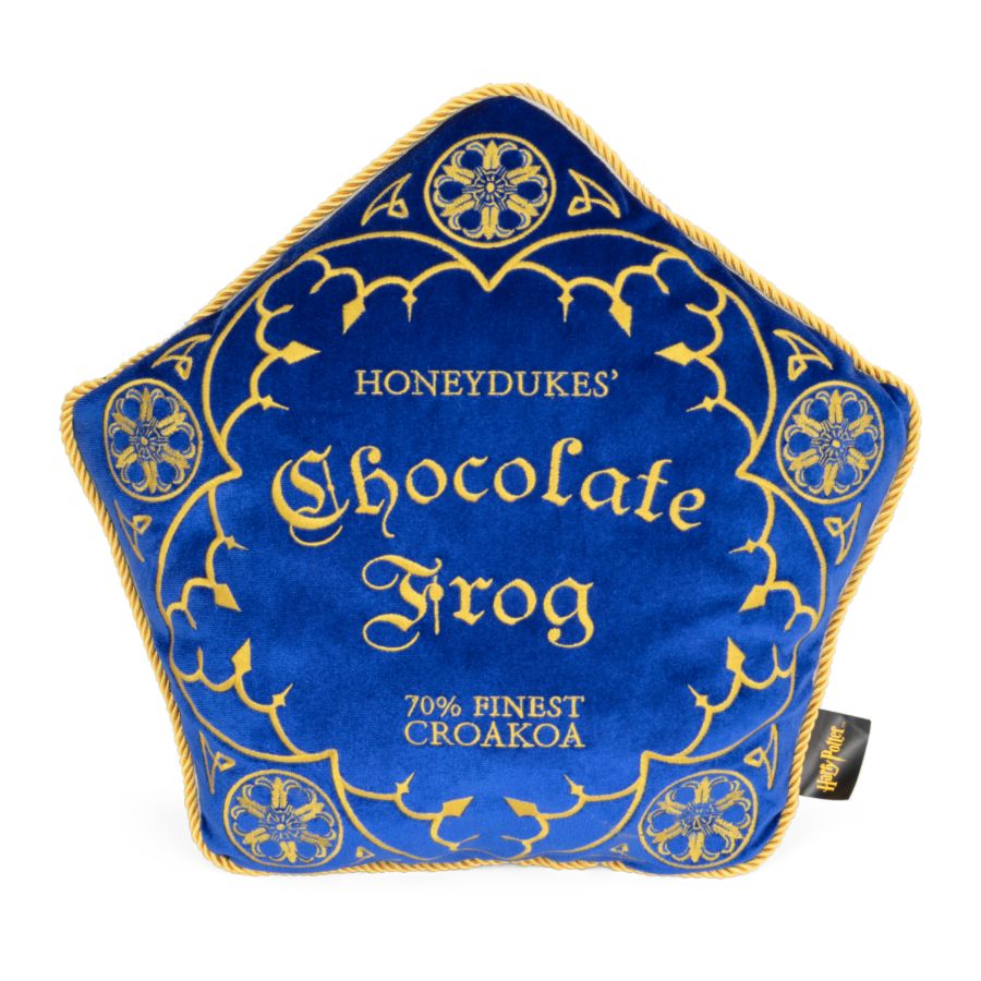 A plush version of Chocolate Frog, first seen in Harry Potter and the Philosophers Stone (2001), offered with a plush blue velvet Honeydukes Sweetshop branded cushion.