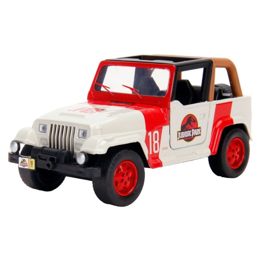 Ensure the safety of all visitors to Jurassic World with this iconic Jurassic Park Jeep Wrangler. This ride features styling cues directly from the film franchise. Created with a highly detailed sculpt process and premium paint, the vehicle includes working wheels, opening doors, premium rubber tires and a quality die-cast vehicle body.
