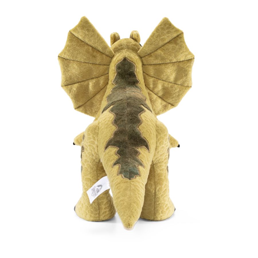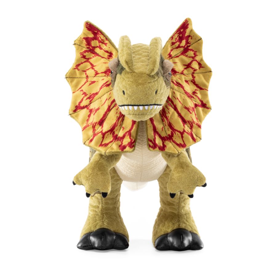 This fun plush version of the dilophosaurus measures approx. 10" tall, and is crafted with premium textured fabrics and finished with fine embroidered details.