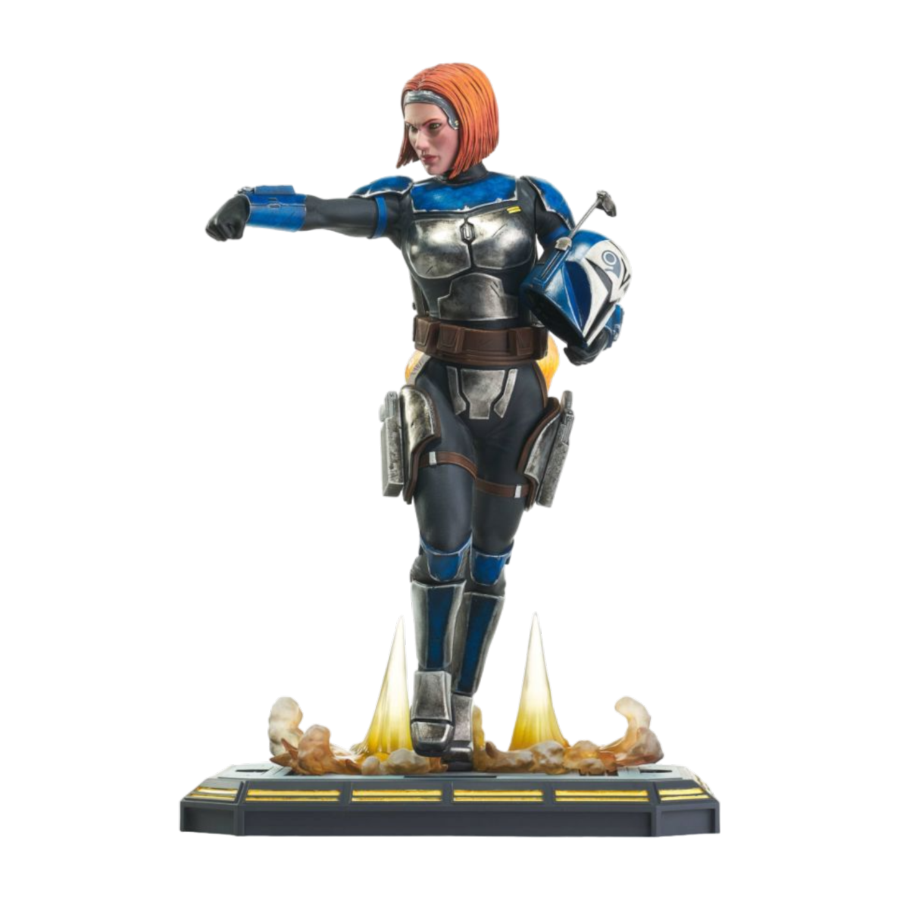 For the glory of Mandalore! Mandalorian freedom fighter Bo Katan blasts her way into the Premier Collection with this dynamic, customizable statue! Featuring interchangeable helmeted and unhelmeted heads, and alternate helmet-holding and gun-holding arms, Bo Katan engages her jetpack in this 1/7 scale, approximately 11-inch statue. Limited to only 3,000 pieces, it comes packaged with a numbered certificate of authenticity in a full-color box. Designed by Barry Bradfield and sculpted by Alejandro Pereira! View all