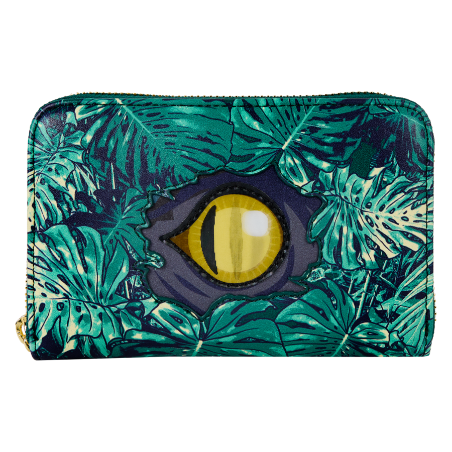 Show off your love for Jurassic World with this wallet, featuring an eye of a velociraptor peeking out through the foliage. The eye is lenticular, so it shifts its gaze as you move it back and forth!
