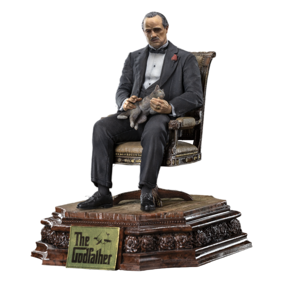 Iron Studios presents an incredibly detailed statue modelled after Don Vito Corleone from the legendary film The Godfather! Seen sitting in his office chair as his cat purrs in his lap, the Don beckons to one of his men.