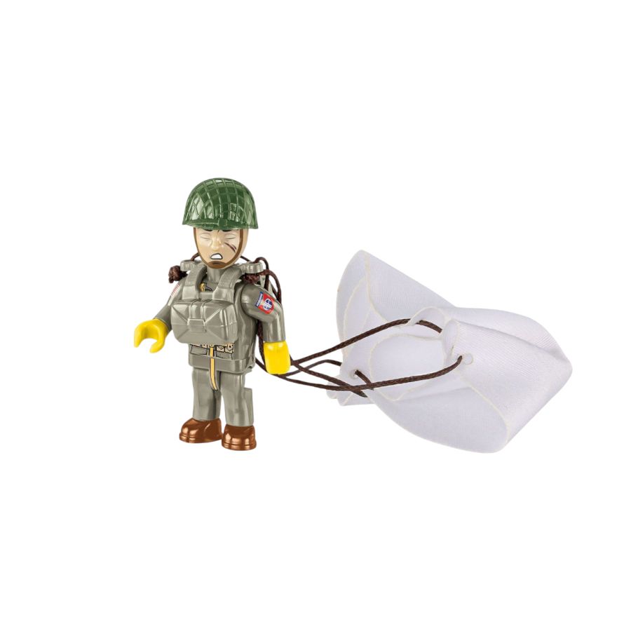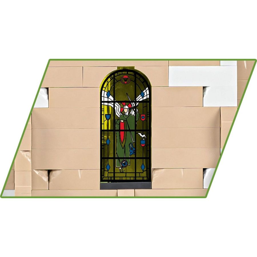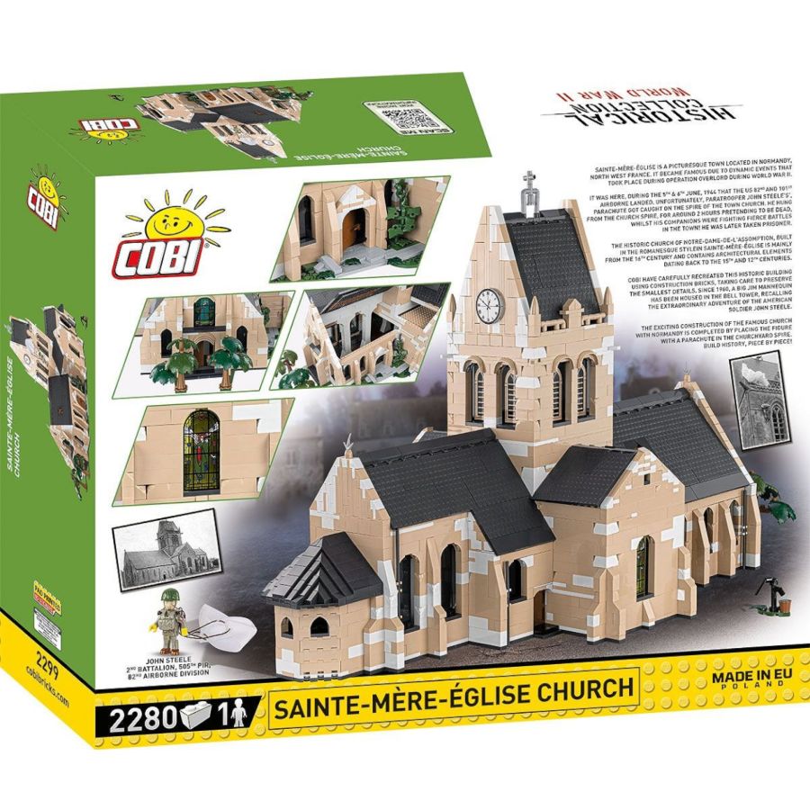The church model was carefully reproduced from 2,280 COBI construction blocks. We have not forgotten about the characteristic architectural details and wonderful stained-glass windows commemorating the fight of American soldiers! The clock on the church tower shows exactly the time when the American paratroopers landed! There are elements of the environment and vegetation around the church. We also placed a historic water pump next to the church, where a fierce fight took place! The church roof can be detached to provide access to the interior, which you can arrange on your own. The set includes the most important hero of the historical event, John Steel, with a parachute attached to the corner of a church tower! Build the story, piece by piece, with COBI.