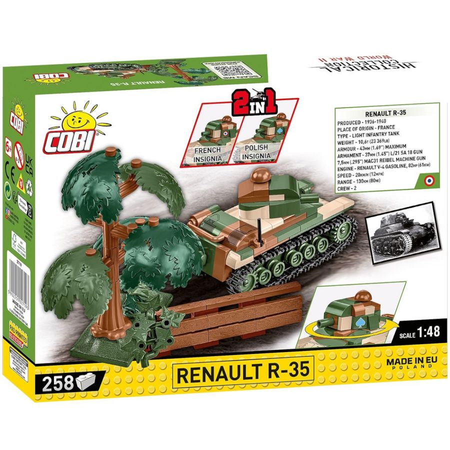 The model, reproduced in a scale of 1:48, can be built from 258 bricks. Movable caterpillar traction, rotating turret, prints, double Polish and French emblems and the included environmental elements (a fragment of a fence, a tree, vegetation) make it an ideal set for both play and display. A clear and intuitive manual also easily guides the builder through the subsequent stages of assembling the vehicle. High-quality, durable prints improve the aesthetics of the model, as well. Build history, piece by piece, with COBI!