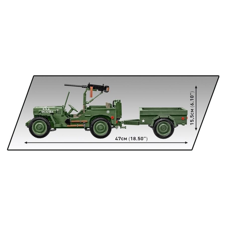 The licensed Willys Jeep with trailer was released as an advanced 1:12 scale model and perfectly fits the celebration of the 80th anniversary of the Allied landings in Normandy! The world's most popular off-road vehicle and trailer were carefully designed using COBI construction blocks and consist of 1,580 elements. When built together with the trailer it is 45cm long!