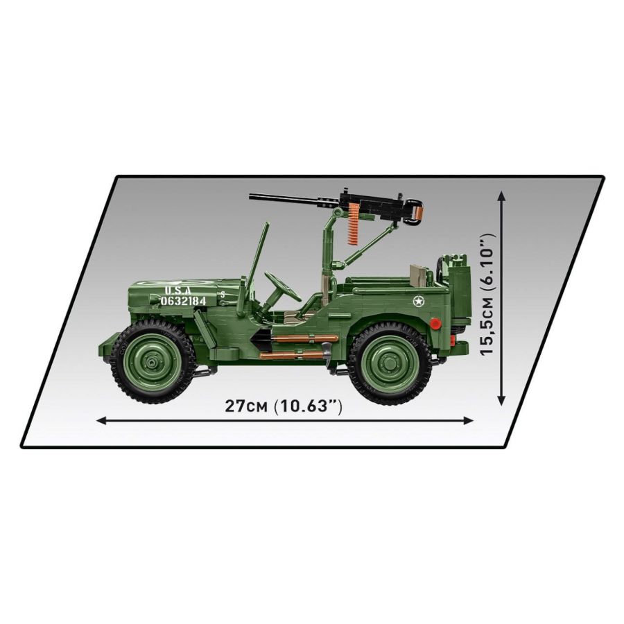 The world's most popular off-road vehicle was carefully designed using COBI construction blocks and consists of 1,207 elements. Completely new elements with details reflecting the appearance of the historic car were created especially for this set. The huge block Willys MB has a characteristic grill and hood, realistic turning wheels, a working steering wheel, interior details and a reproduced engine. The brick vehicle is equipped with a heavy machine gun and brick gasoline cans that can be attached to the back. The wheels with rubber tires rotate and turn and can be moved while playing.