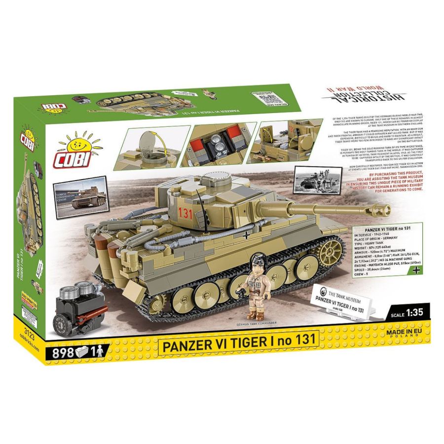 The block Tiger 131 has been reproduced with attention to detail in the very popular 1:35 scale! It is worth emphasizing that this is the first time COBI has released the legendary Tiger 131 in this size! The model has movable elements like the turret and gun barrel as well as rotating wheels and tracks.