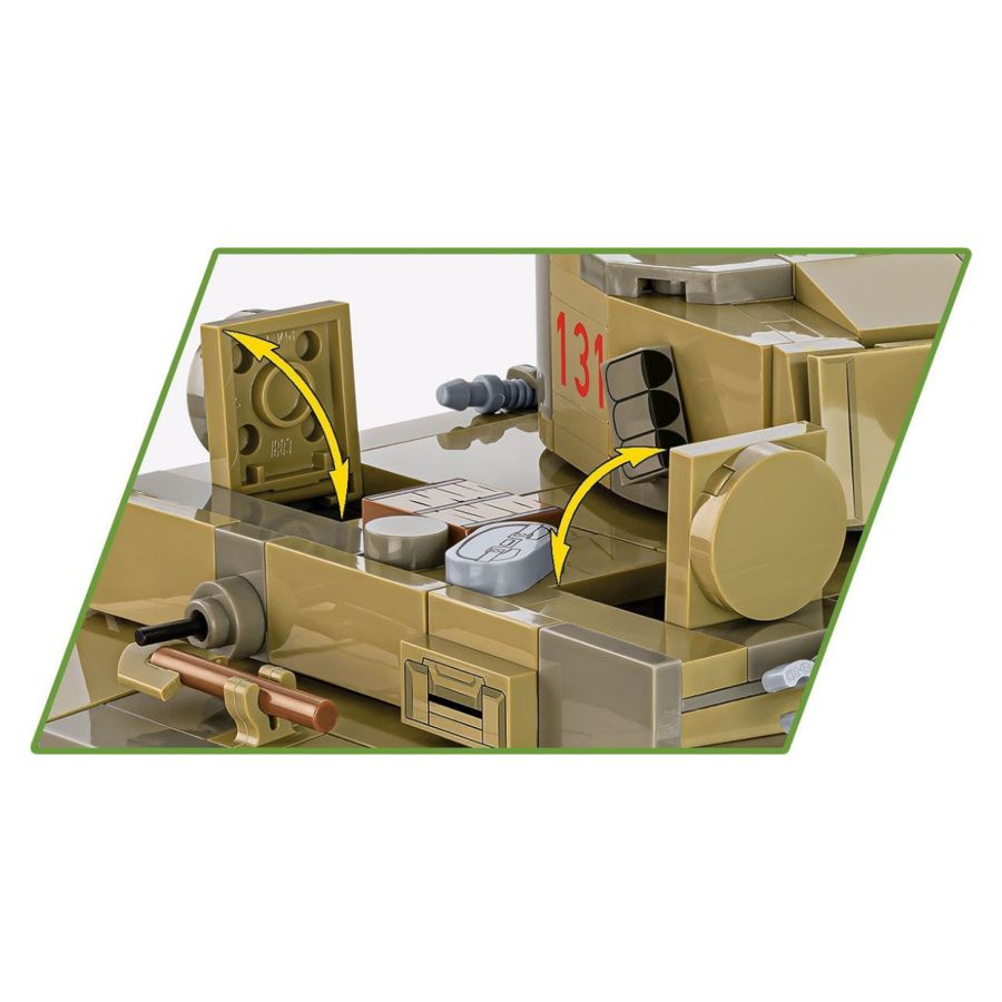 During play you can drive the tank and watch the working caterpillar traction! The hatches are opened and there is space under them for standard COBI figures. The figure depicts the tank commander in tropical uniform. The whole set is complemented by a white plate with the name of the tank and The Tank Museum logo printed on it! Build history, piece by piece, and complete your Panzer collection.