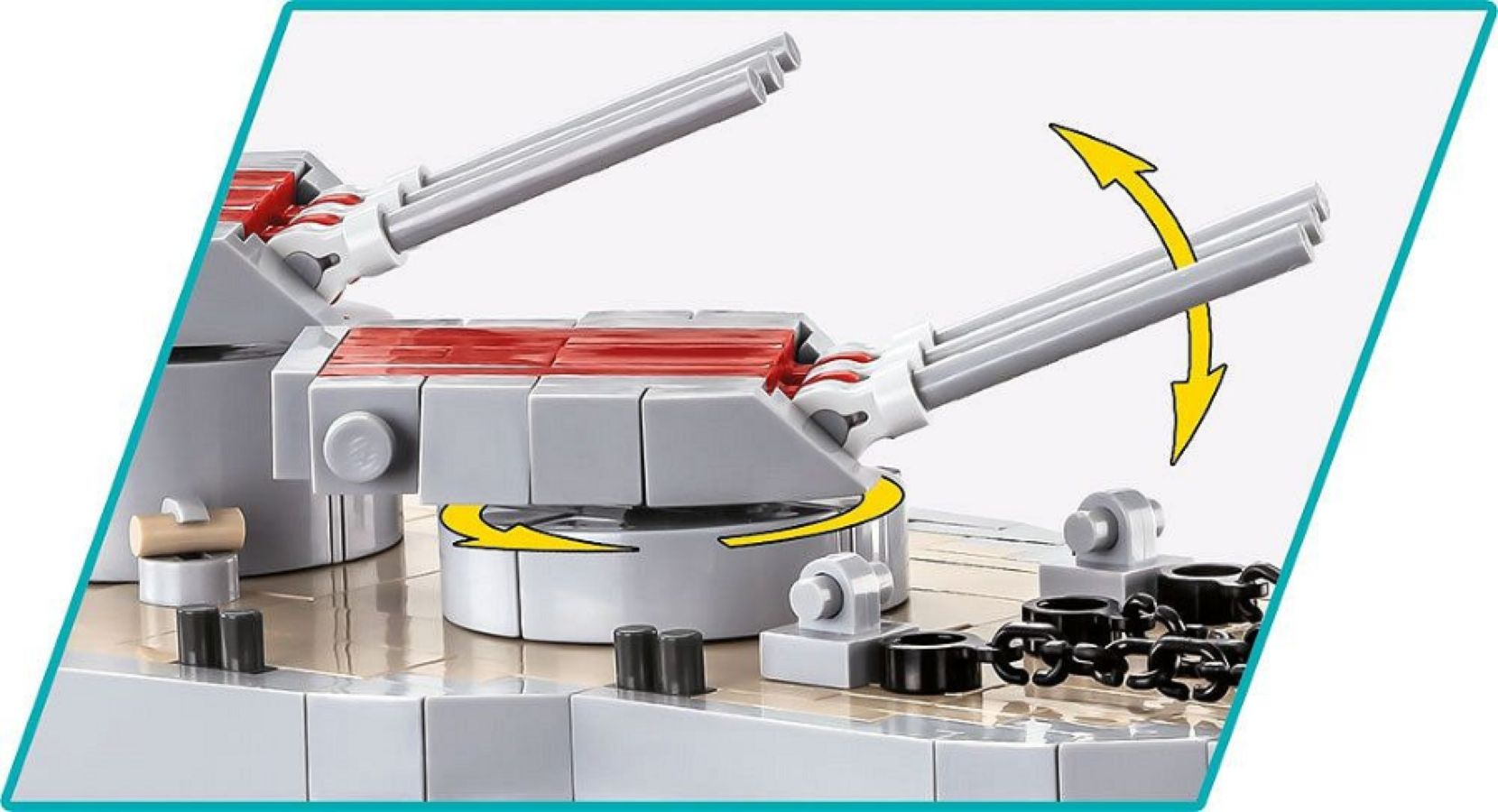 The model has numerous moving parts such as: propellers, rudders, rotating towers and gun barrels that can be raised and lowered. The set is a perfect complement to the collection of historical COBI ships.
