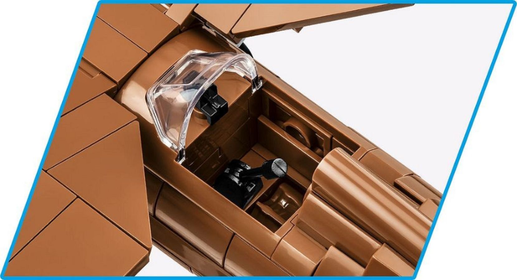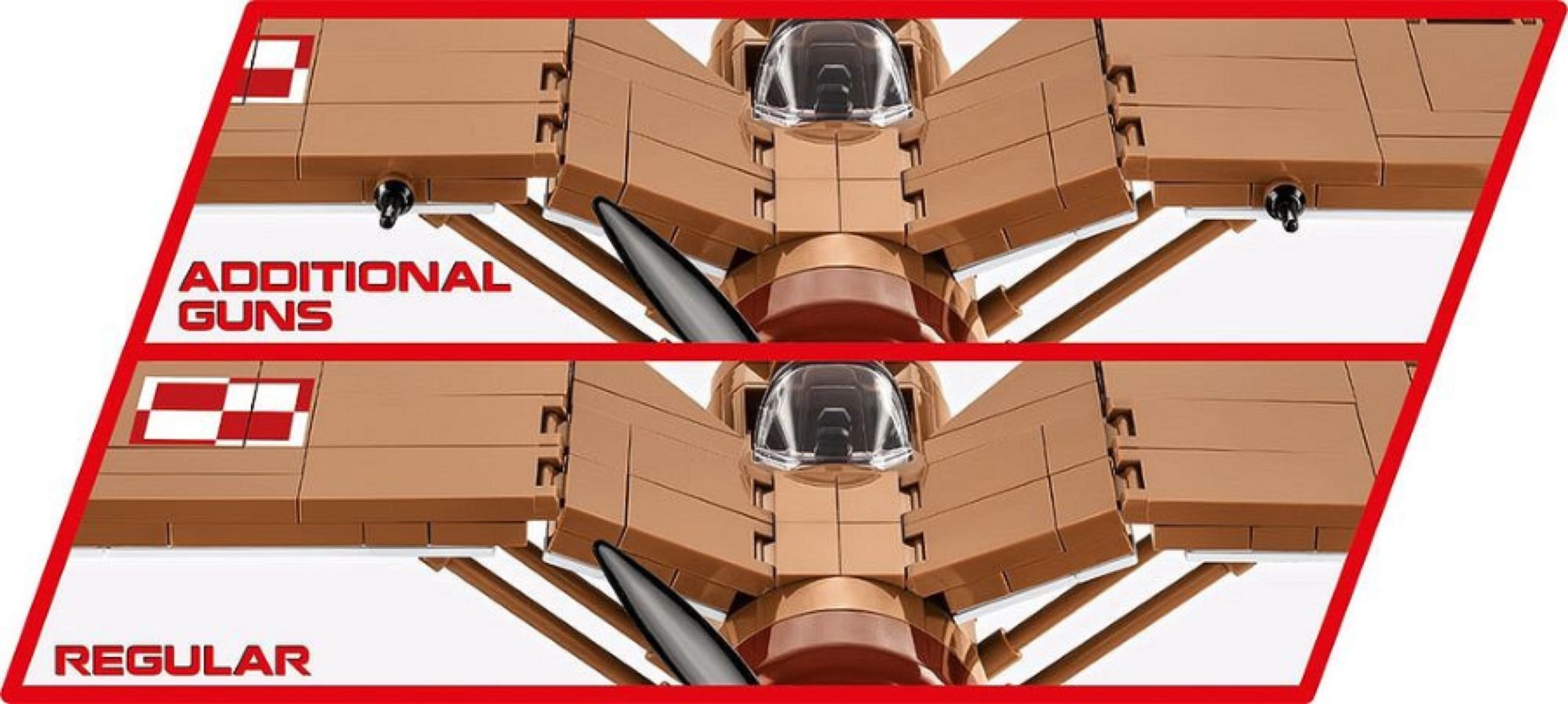 The aircraft's functionalities include a movable propeller, movable ailerons on the wings, the ability to mount 2 or 4 machine guns (optional) and access to the pilot's cabin, where you can place a figure with double-sided prints. Particularly noteworthy are the checkerboard prints on the underside of the wings!