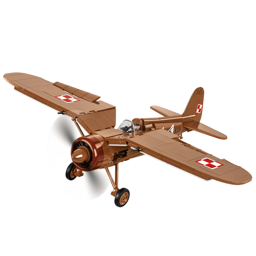 The set also includes a block display stand and a plate with the name of the model. This beautiful historical plane is a must for enthusiasts of history, aviation and Polish military technology! It's perfect for collecting, and the construction is simple thanks to the intuitive and clear instructions.