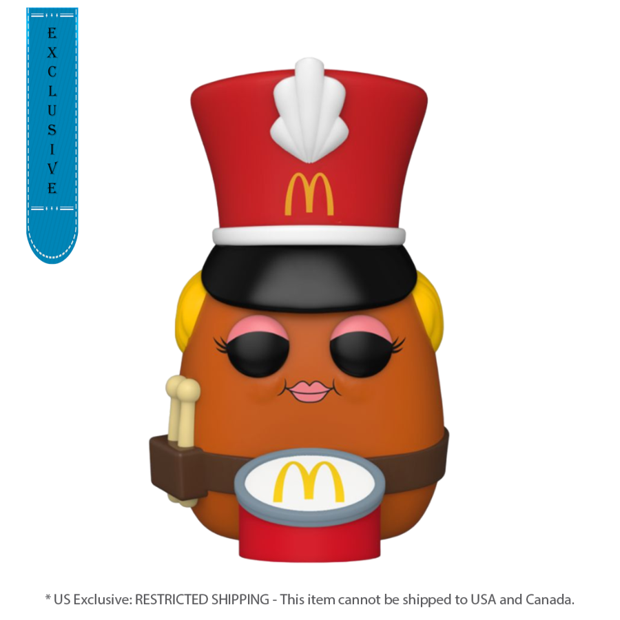 FunKon / SDCC 2021 US Exclusive: RESTRICTED SHIPPING - this item cannot be shipped to USA and Canada. Visit the Golden Arches and bring together Ronald McDonald and friends with Pop! Drummer McNugget. Your Ad Icon collection isn't complete without the Drummer McNugget from McDonaldLand. Get yours while supplies last. Vinyl figure is approximately 4-inches tall. View all