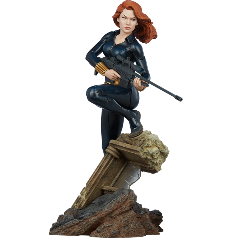 "I'm my own woman- first, last, and always." Sideshow presents the Black Widow Statue, in position to join the Avengers Assemble Statue Collection. Inspired by some of Marvel ’s most iconic characters, the 1:5 scale Avengers Assemble collection captures the colorful and battle-ready styles of Earth ’s Mightiest Heroes! The polyresin Black Widow Statue measures 14.5" tall as Natasha Romanoff stands alert atop a ruined city building base with a cracked window element. Armed with a sniper rifle, the avenging superspy is ready to help her team and take aim at the next target. Black Widow features a fully-sculpted costume in her signature stealthy black, complete with her gold Widow ’s Bite bracelets and belt. Her long red hair flows in the wind as she looks on with intense focus, living up to her deadly namesake. Pair Black Widow with her allies including Black Panther, Captain America, and Iron Man to assemble your ultimate collection of Avengers statues and create an epic battle scene with their destruction-covered proximity bases. Walk into her web and bring home the Black Widow Statue for your universe of Marvel collectibles today! View all