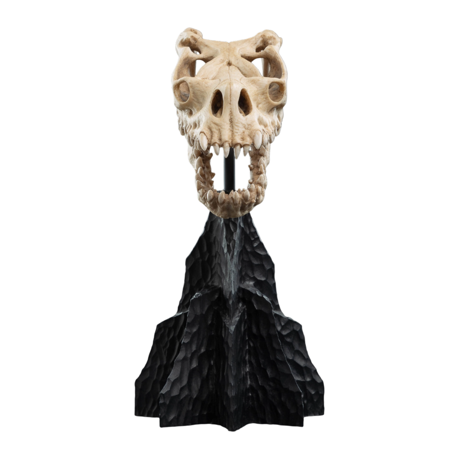 Obsidian-like stand makes this skull feel like an artifact straight out of Sarumans study;