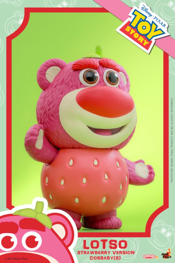 Lots-o ’-huggin ’ bear, as known as lotso, is a large, pink strawberry-scented teddy bear who used to rule sunny-side daycare with his former minions. Based on Pixar ’s Toy Story, Hot Toys is recreating Lotso as our latest Cosbaby collection. Toy Story characters in stylized Cosbaby form - Approximately 9.5 - 11cm tall - Non-articulated figure View all