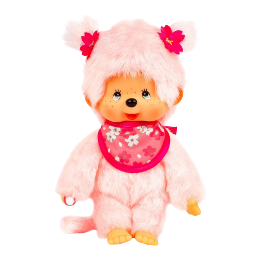 Monchhichi Classic Sakura (Cherry Blossom) Girl is in the cutest filled Cherry Blossom colors. Also referred to as the "Japanese Cherry"" or "Sakura", they are known for their beauty and volatility. Her cute bib, flowers in her hair and expressive eyes makes you want to cuddle with and take on adventures. This Monchhichi Classic Sakura makes the perfect gift for both collectors and fans everywhere. Order yours today!