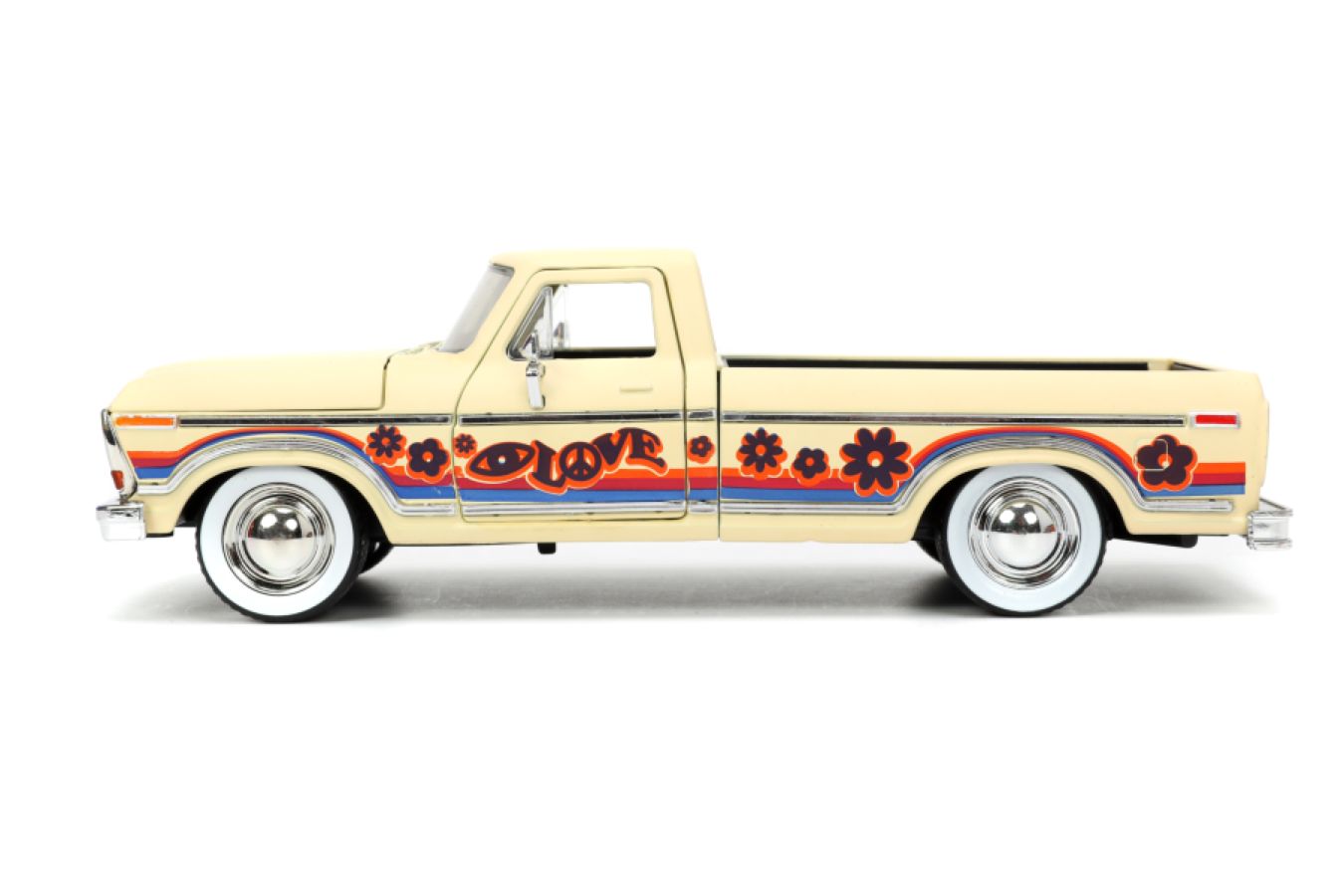The I Love The collection is inspired by US design styles throughout the decades. Each 1:24 Die-Cast vehicle is highly detailed and crafted to authentically reflect the styling cues from its respective decade. With fully functioning doors, hood and tailgate, and groovy era inspired decals, this 1979 Ford F-150 will pick you up.