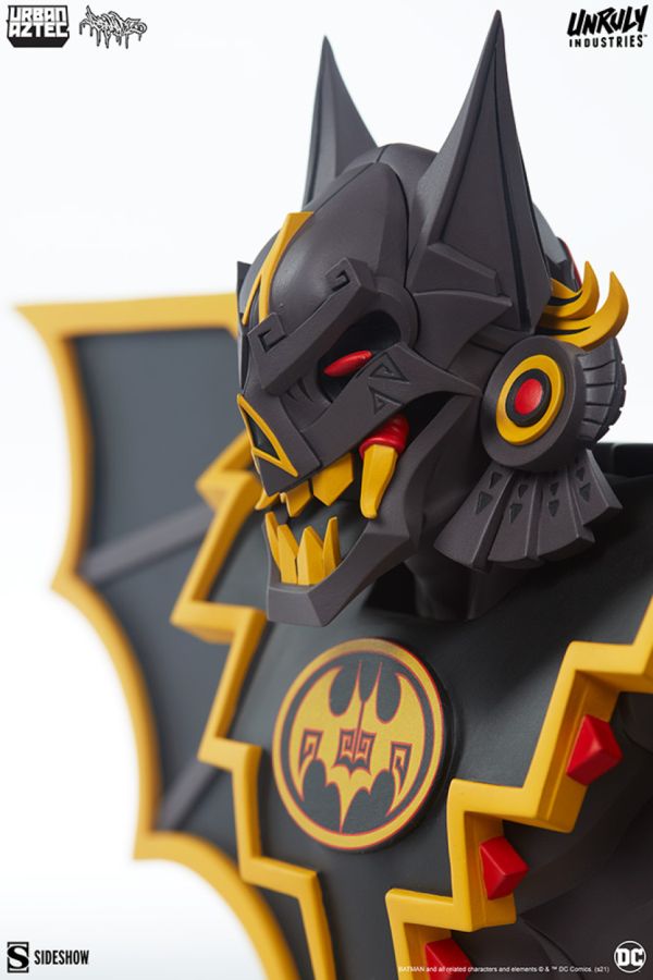 The graffiti stylings of Urban Aztec have hit the streets of Gotham City! From out of the shadows, the Batman Designer Collectible Toy by artist Jesse Hernandez reimagines the Dark Knight in a vibrant and stylish intersection of ancient culture and pop culture. Artist Statement: It was an honor to design a new version of Batman. Reimagining the Dark Knight was epic! The silhouette pose represents the iconic bat symbol. About the Artist: Jesse Hernandez (@UrbanAztec) is a visual artist born and raised in the San Francisco Bay area, most widely recognized for his street art murals, vinyl toys, and diverse Illustration work. His style is known as Urban Aztec, a combination of graffiti and ancient indigenous culture. Hernandez ’s artwork has been featured by Warner Bros., the San Jose Sharks, the Oakland Museum, Rockstar energy drink, Rolling Stone magazine, Fandango, Juxtapoz, Gears of War 4, X-Box, Playstation, Run the Jewels, Oakland Athletics, and the Cosmopolitan Las Vegas. Hernandez has shown art in galleries and museums around the world. He has also painted murals in Oakland, San Francisco, Los Angeles, Mexico City and Amsterdam. View all
