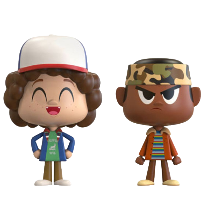 Dustin Henderson and Lucas Sinclair From the Netflix series Stranger Things Dustin as portrayed by Gaten Matarazzo Lucas as portrayed by Caleb McLaughlin Made of plastic/vinyl 3.75" tall View all