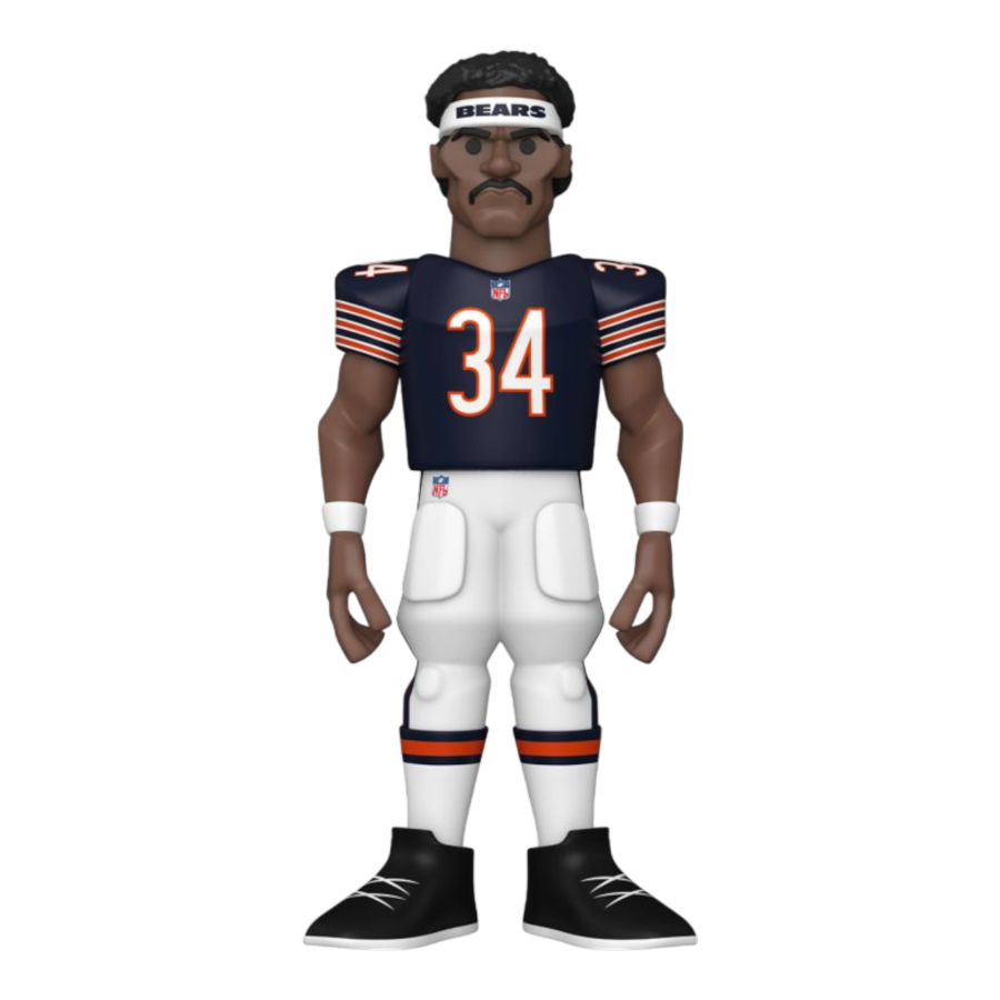Score a touchdown for your National Football League collection with the new GOLD Walter Payton premium vinyl figure. This 5-inch tall collectible of Walter Payton has him dressed in his navy Chicago Bears uniform. GOLD is the perfect way to commemorate some of your favorite, legendary NFL players in your collection, and each figure comes in a sleek, display-ready box that is easy to stack with other GOLD collectibles. There's a 1 in 6 chance you may find the chase variant of Walter Payton in his white jersey, navy pants away game uniform. Vinyl figure is 5-inches tall. View all