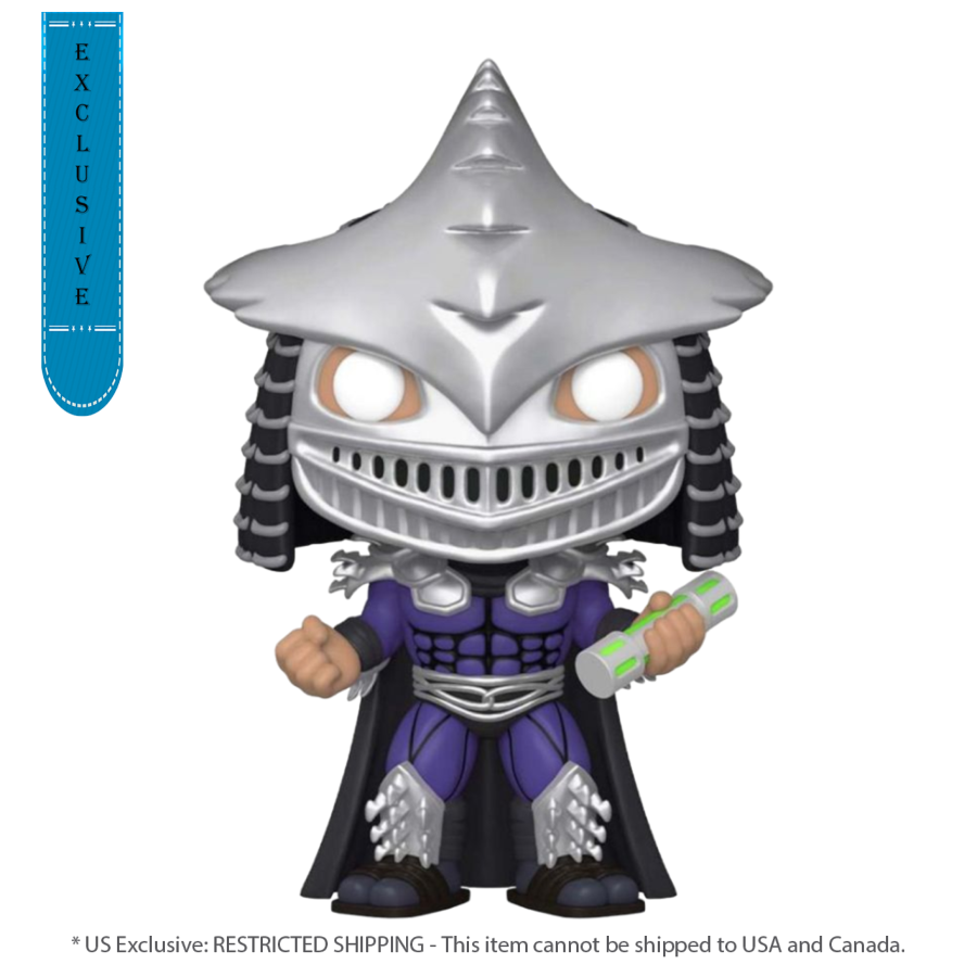 US Exclusive: RESTRICTED SHIPPING - this item cannot be shipped to USA and Canada. Super Shredder, mutated with a cannister of Ooze From the 1991 movie Teenage Mutant Ninja Turtles II: The Screte of the Ooze As portrayed by Francois Chau & David McCharen Made of plastic/vinyl Approximately 10" tall Window box packaging Pop!Movies #1168 View all