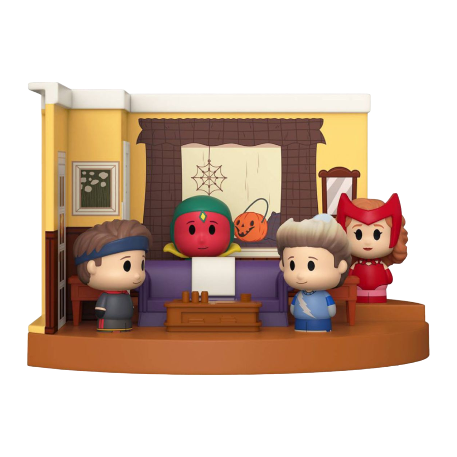 US Exclusive: RESTRICTED SHIPPING - this item cannot be shipped to USA and Canada. Make Halloween memories with Wanda and Vision with this US Exclusive Marvel Studios' Wanda & Vision 2000s Pop! Mini Moments. Enter Wanda & Vision's living room, which is decorated for Halloween. Pop! Wanda, Pop! Vision, Pop! Billy and Pop! Tommy have gathered, wearing retro costumes. Help them hold onto this family bonding moment and add them to your set. Collect Pop! Mini Moments to re-create scenes of your favorite Marvel characters, movies, and shows. Vinyl bobbleheads are approximately 1.5-inches tall, while set piece is approximately 3.75-inches tall and 5.25-inches wide View all